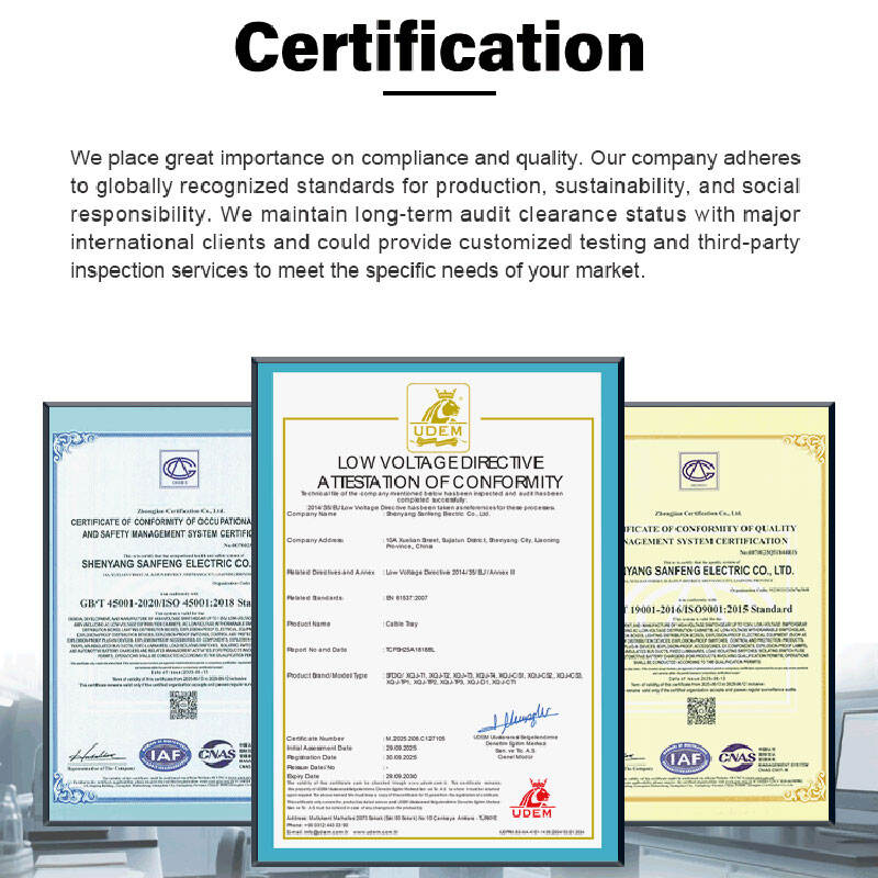 Shenyang Sanfeng Electric Co., Ltd. is an enterprise specializing in the design, research and development, manufacturing and sales of industrial product. The company's site area is 50,000 square meters and the annual production capacity is 50 million dollar. The company has advanced computer-aided design system and advanced CNC processing equipment. The company and products have passed the quality system certification, environmental management system certification and occupational health and safety management system certification, as well as the national 3C certification and national patent certification.Our major cable tray products are perforated cable tray, cable trunking, cable ladder, floor cable tray and drawer cable tray with different surface finishing such as stainless steel, pre-galvanized, powder coated and hot dip galvanized.